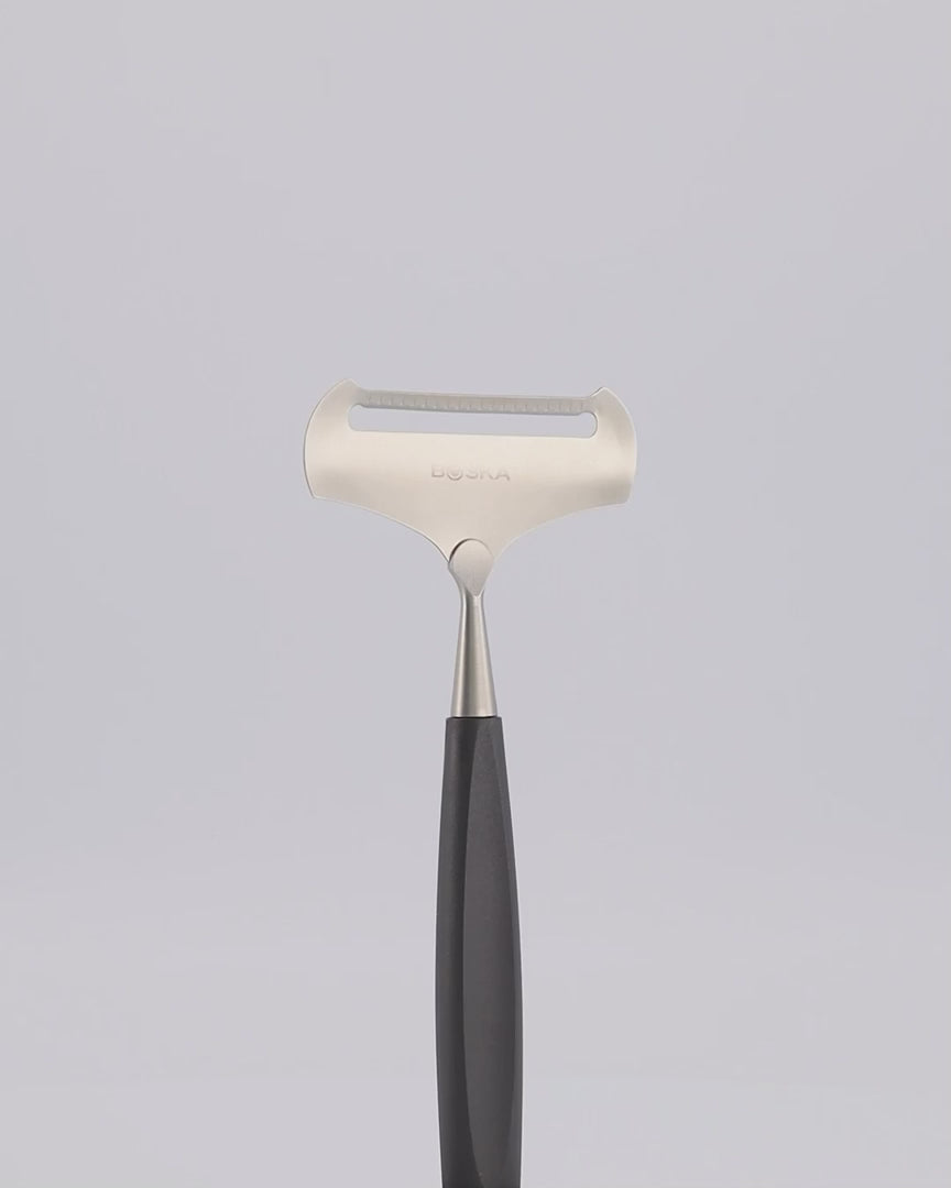 Ostaskerinn er úr ryðfríu stáli með þægilegu svörtu handfangi úr plasti, sem veitir þér gott grip. Hnífurinn er stuttur og með rifflað blað, sem leiðir til minni mótstöðu á meðan þú ert að skera og þannig festist osturinn ekki eða krumpast.