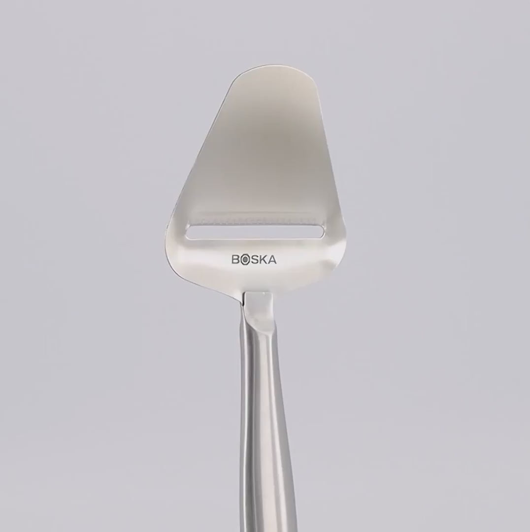 Stílhreinn og fallegur ostaskeri frá BOSKA. Hann er holur að innan sem gerir hann virkilega léttann. Hann er úr hágæða ryðfríu stáli sem gefur ostaskeranum aukinn stöðugleika og heldur hnífnum beittum í langan tíma þrátt fyrir mikla notkun. Ostaskerinn má fara í uppþvottavél.