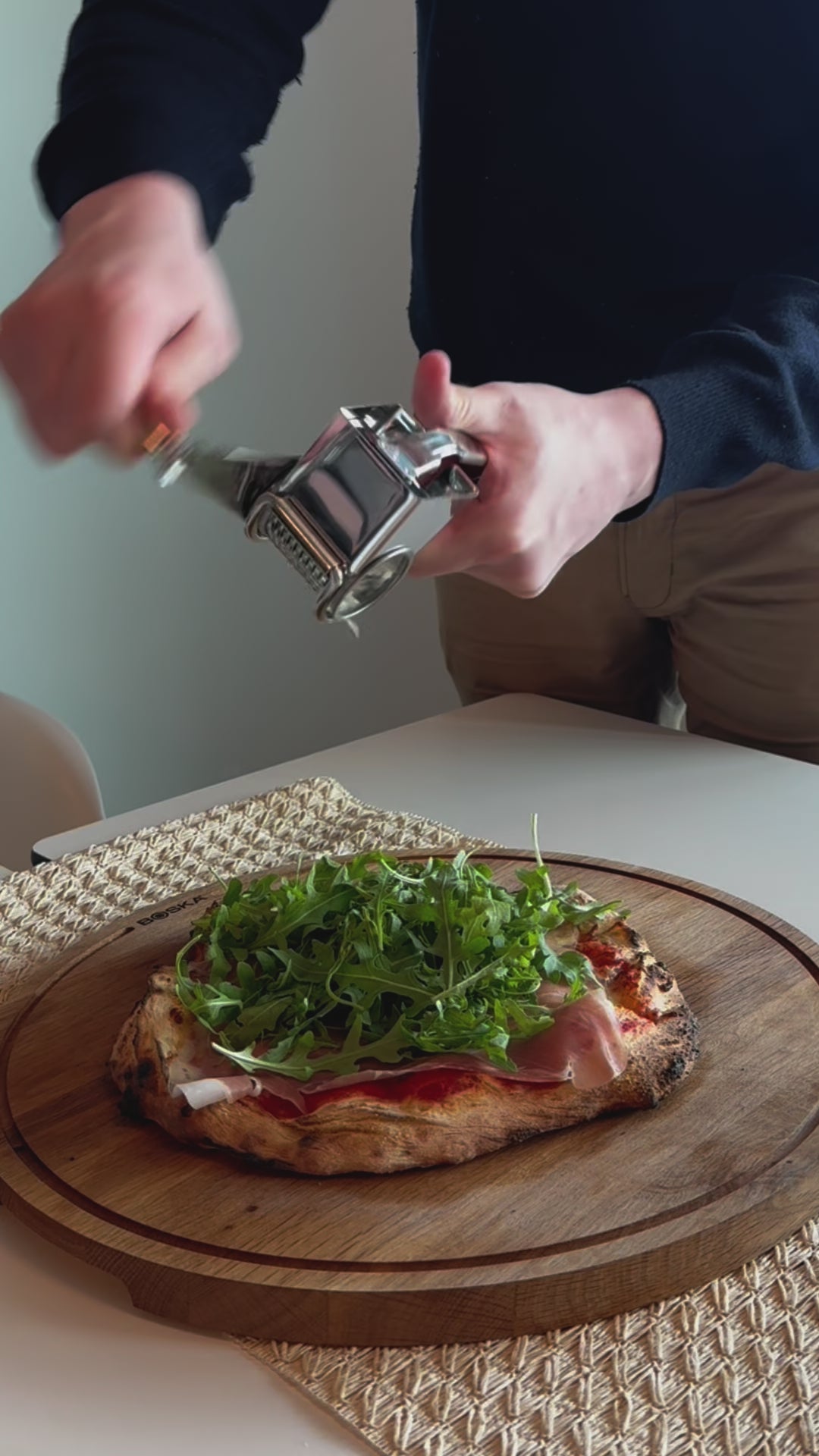 Loksins komið aftur í takmörkuðu magni! Rifjárnið hentar vel fyrir Parmesan ost. Ostinum er komið fyrir í rifjárninu og handfanginu snúið en þannig stráist osturinn vel yfir matinn.